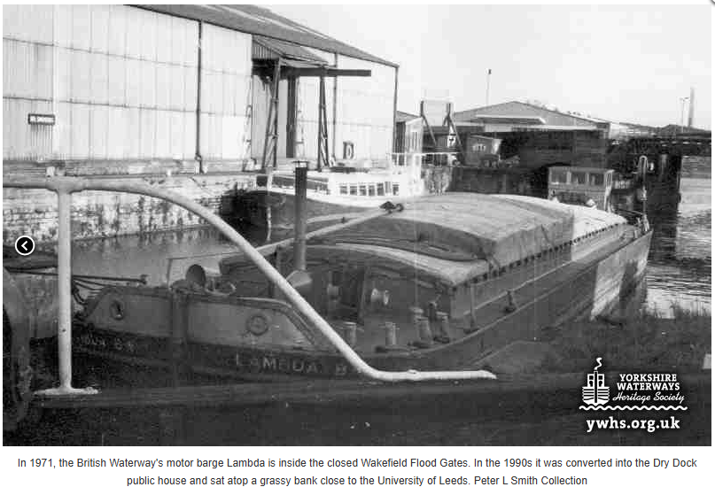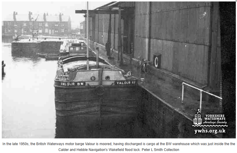 Here you can see the entrance to Wakefield Flood Lock at around the same time, before construction started on Hebble Wharf.